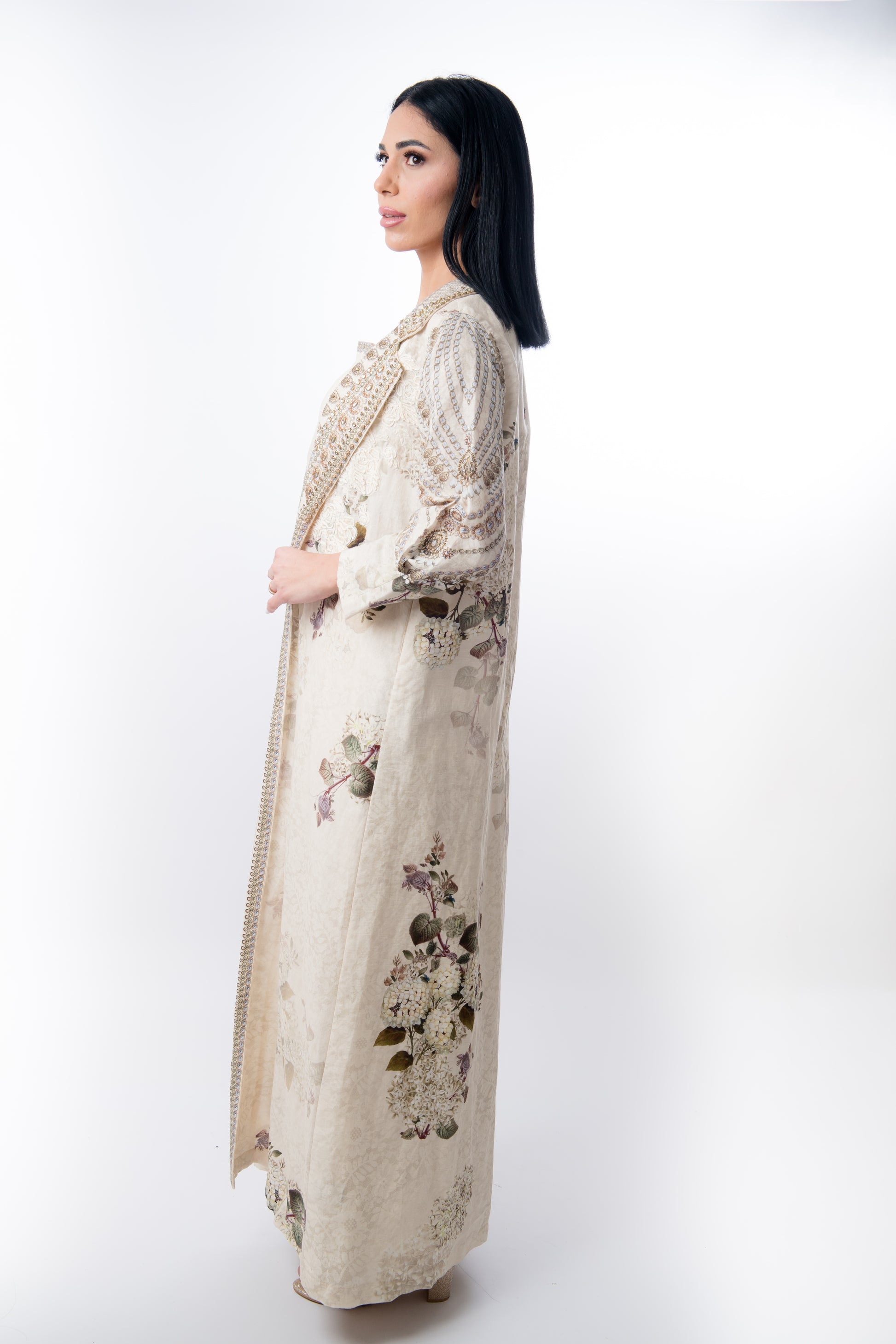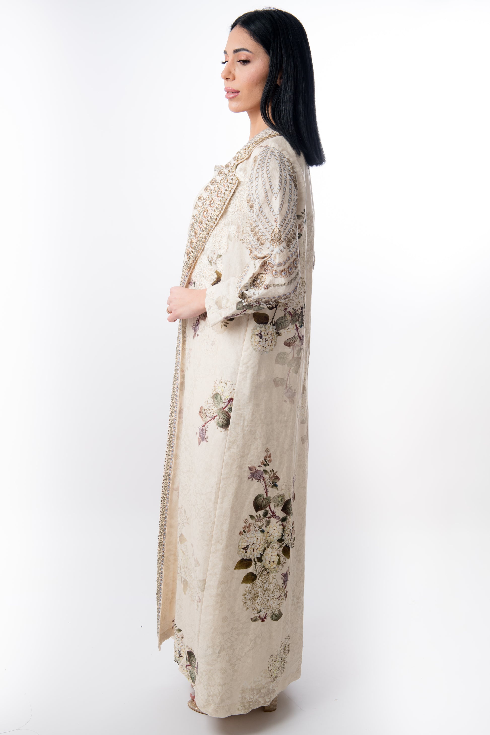 Hand-embellished detailing along the jacket and waistband for a touch of luxury
